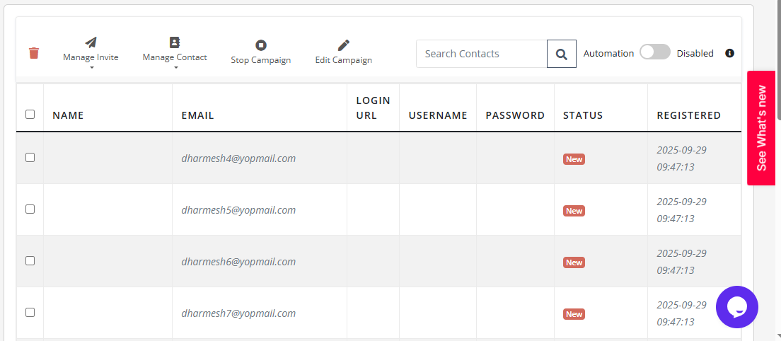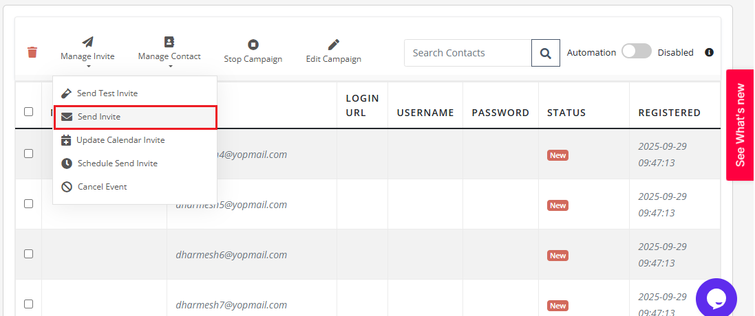 - After clicking the "Paper Plane Icon", you will see all the attendees you have uploaded to your campaign.